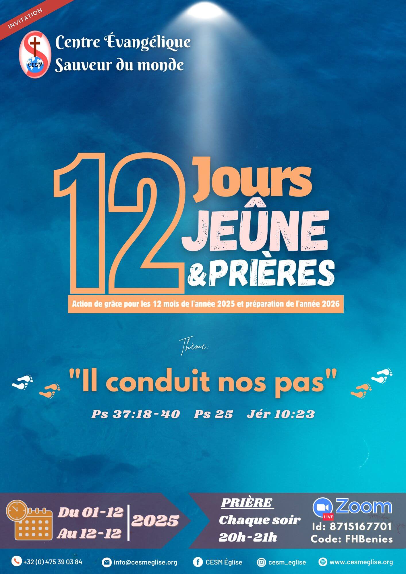 C’est avec une immense joie que nous vous accueillons en ligne au sein de notre communauté. Le Centre Évangélique Sauveur du monde (CESM) est bien plus qu’un simple espace virtuel, c’est un lieu de partage, d’inspiration et d’élévation spirituelle.
